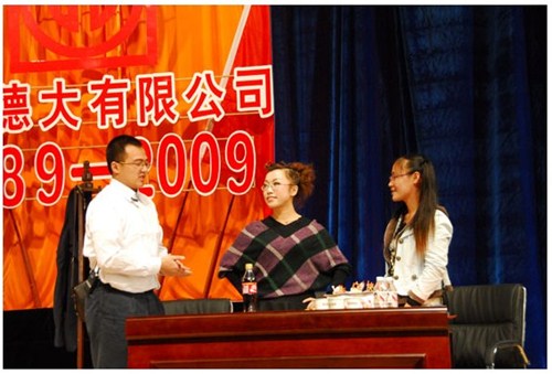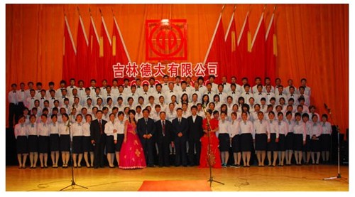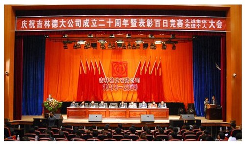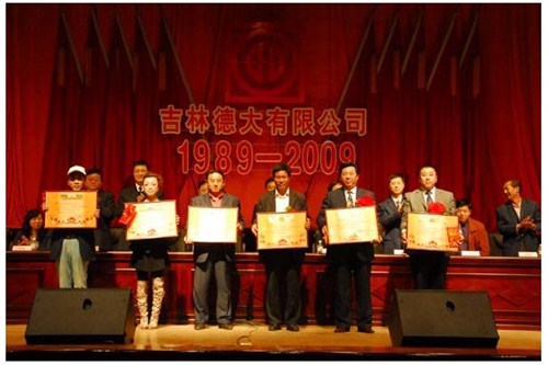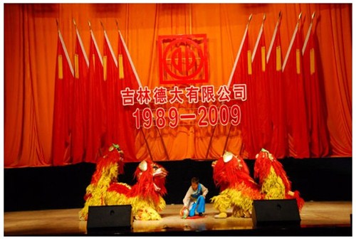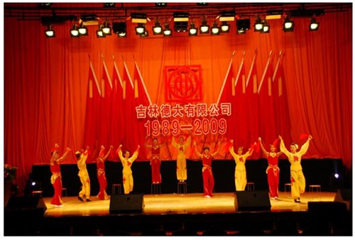 舉世同歡,六十載華夏慶盛世太平, 載歌載舞,二十年德大賀巨龍騰飛。 金秋九月,碩果飄香。在這收獲的季節(jié),我們迎來了偉大祖國(guó)六十周年慶典,同時(shí)也迎來了吉林德大有限公司成立二十周年華誕,我們祝福偉大祖國(guó)繁榮富強(qiáng),祝福德大公司事業(yè)蒸蒸日上。 二00九年九月二十八日,中共吉林德大有限公司黨委、工會(huì)、共青團(tuán)委、婦委會(huì)在德惠市文化宮聯(lián)合舉辦“慶祝吉林德大有限公司成立二十周年暨表彰百日競(jìng)賽先進(jìn)集體、先進(jìn)個(gè)人大會(huì)”。大會(huì)從下午一時(shí)開始,共進(jìn)行了四個(gè)小時(shí)。大會(huì)由中共吉林德大有限公司黨委書記陳玉和主持。參會(huì)的公司領(lǐng)導(dǎo)有:于建平總裁、劉繼仲副總裁、唐彬副總裁、董事會(huì)殷淑蓮董事等,公司總部、各事業(yè)部主管及員工參會(huì),參會(huì)總?cè)藬?shù)近800人。 大會(huì)共進(jìn)行五項(xiàng)議程。 首先由于建平總裁發(fā)表重要講話,于總裁向全體員工表示衷心的感謝,感謝全體員工多年來為公司做出的巨大貢獻(xiàn),同時(shí)向大家表示節(jié)日的祝賀,并回顧了公司發(fā)展的歷程,對(duì)公司今后的發(fā)展提出了新的要求和希望。 接下來公司黨委副書記劉忠臣宣讀了表彰決定,對(duì)在“振興德大、從我做起”百日競(jìng)賽活動(dòng)中涌現(xiàn)出的先進(jìn)集體及先進(jìn)個(gè)人進(jìn)行表彰,由主席臺(tái)就坐的各位領(lǐng)導(dǎo)向獲獎(jiǎng)的先進(jìn)集體和先進(jìn)個(gè)人頒獎(jiǎng)。共評(píng)選出先進(jìn)集體6個(gè)、先進(jìn)個(gè)人98人,其中優(yōu)秀黨員15人,優(yōu)秀團(tuán)員 9人,青年突擊手10人,巾幗標(biāo)兵22人,勞動(dòng)模范21人,生產(chǎn)能手21人,由食品事業(yè)品管部高鳳紅代表先進(jìn)集體和先進(jìn)個(gè)人講話,她代表先進(jìn)集體和個(gè)人表達(dá)了繼續(xù)努力,為公司發(fā)展做貢獻(xiàn)的決心。先進(jìn)集體、先進(jìn)個(gè)人的表彰起到了鼓舞士氣、振奮人心的作用,給廣大員工樹立了工作的典范和學(xué)習(xí)的榜樣。 頒獎(jiǎng)儀式之后舉行了盛大的文藝演出,參加演出單位有種禽事業(yè)部、肉雞自養(yǎng)事業(yè)部、肉雞放養(yǎng)事業(yè)部、飼料事業(yè)部、食品事業(yè)部、總裁室、采購(gòu)中心等。節(jié)目類型多樣,內(nèi)容豐富多彩,有獅子舞、男女聲二重唱、四句半、藏族舞蹈、獨(dú)唱、小品、坐唱、詩朗誦、音樂快板、京劇聯(lián)唱、配樂詩朗誦、大合唱、二人轉(zhuǎn)等。四位主持人更是風(fēng)采照人,剛一登臺(tái)就博得臺(tái)下熱烈的掌聲,被于總裁譽(yù)為“有專業(yè)水平”。演出的成功源自周密的組織和密切的配合,在公司工會(huì)的組織下,各部門密切合作,很多幕后人員付出了辛勤的汗水。尤其是來自一線的演職人員,為了這次演出,他們不怕苦、累,在繁忙的工作之余擠出時(shí)間排練節(jié)目,精彩的演出得到了公司領(lǐng)導(dǎo)和觀眾的贊譽(yù)。坐唱《德大春風(fēng)暖人間》取材于公司的真人實(shí)事,表現(xiàn)的是公司員工捐款挽救一位員工家屬的感人事跡。大合唱《我的祖國(guó)》、《團(tuán)結(jié)就是力量》等紅色歌曲,唱出了德大人的激情,唱出了德大人的心聲。原創(chuàng)歌曲《贊美我德大,贊美我家鄉(xiāng)》更是唱出了德大員工對(duì)德大的熱愛和期望。整個(gè)大會(huì)氣氛熱烈,演員們的精彩演出不斷把大會(huì)推向高潮。 最后,全體演員高唱“歌唱祖國(guó)”,大會(huì)在歌聲中圓滿結(jié)束。