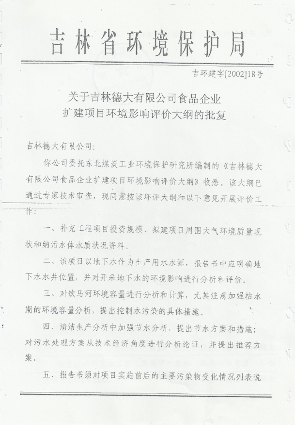 吉林德大有限公司環(huán)評文件